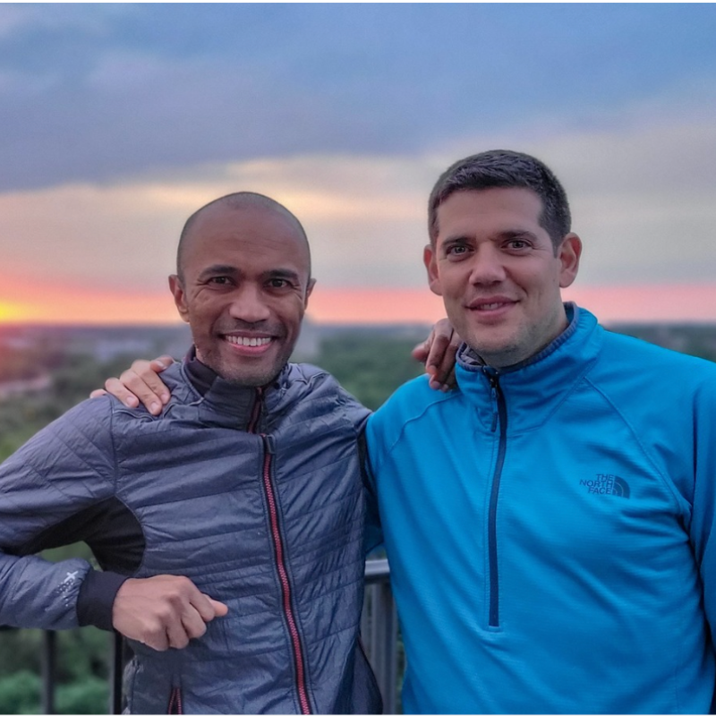 George is a physical therapist and works in a PT clinic where he sees patients every day. Sven is a scientist and works in drug development to find cures for cancer and many other terrible diseases. We both share the passion of wanting to help others in our lives.