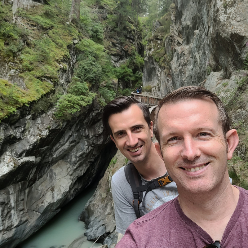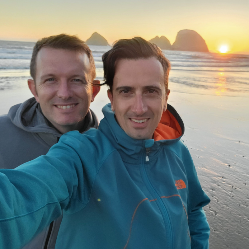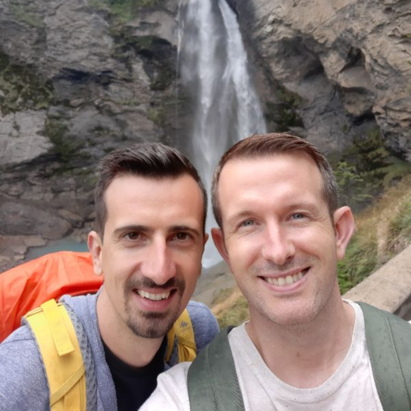 We enjoy spending weekends in the Alps, hiking or snowshoeing depending on the season, reading, and being out in nature. We also like traveling, gardening, playing with our cat, cooking our favorite meals together, and getting together with our friends and families. Spending lots of time with our niece, nephew and all of our friends’ kids has shown us that we would be awesome, playful dads.